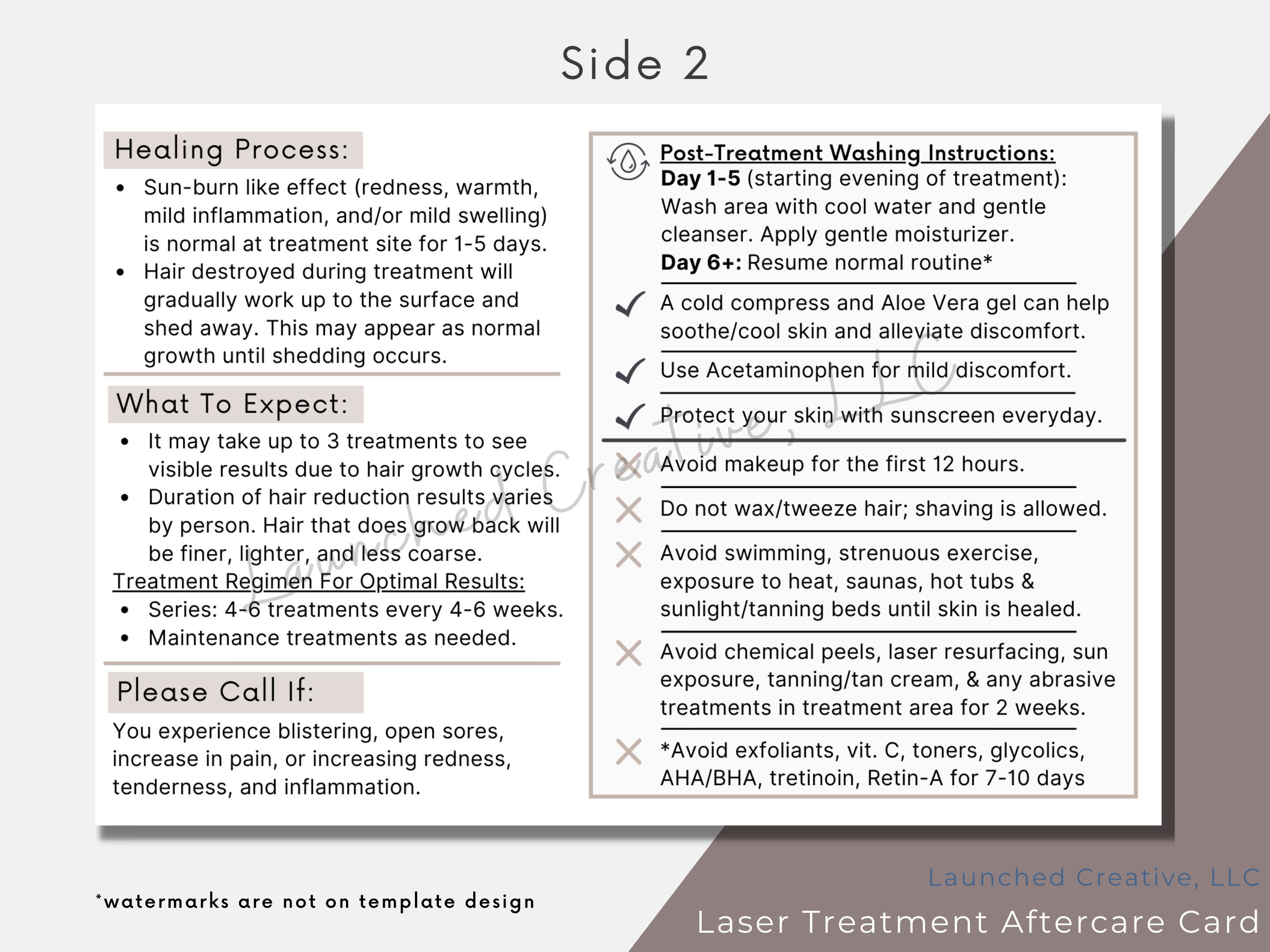 Laser Hair Removal Aftercare Card Laser Treatment Aftercare Etsy